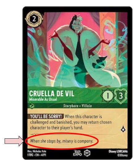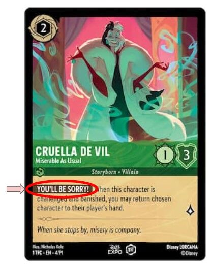ホワイト・ラビットズ・ポケット・ウォッチのアイム レイト! (T),1⬡ – このターン、選ばれたキャラクターはラッシュを得る。(それはプレイされたターンに挑戦することができる。)