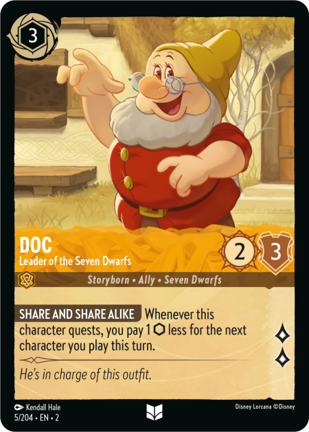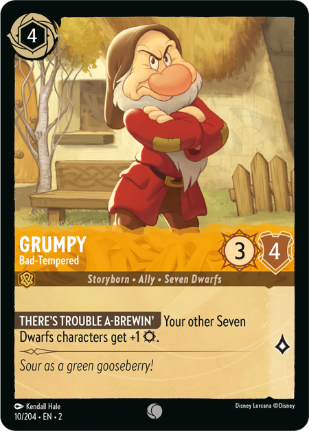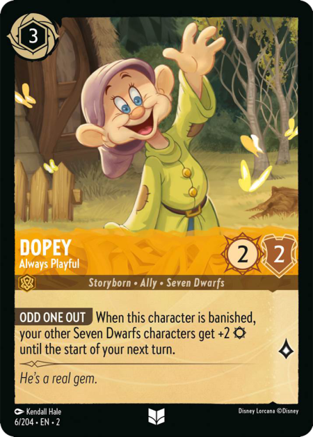 アア – チョー! あなたがこのキャラクターか他の《七人の小人》のキャラクターをプレイするたび、あなたは選んだキャラクターにこのターン-1☼を与えてもよい。
