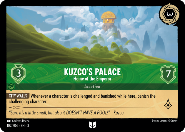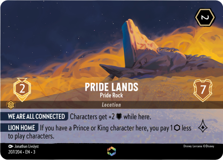 ライオン ホーム このロケーションにプリンスかキング・キャラクターがいる場合、あなたの支払うプレイするキャラクターは1⬡少なくなる。